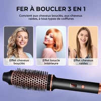 Brosse à boucler jusqu'à 210 °C : Brosse thermique 3-en-1 Pro à ions négatifs et deux éléments chauffants PTC. Profitez d'un coiffage sans effort grâce à une chauffe rapide jusqu'à 210 °C. Idéale pour créer des boucles lisses et rebondissantes ou des ondulations lisses en un clin d'œil, tout en garantissant une tenue longue durée et des résultats dignes d'un salon.